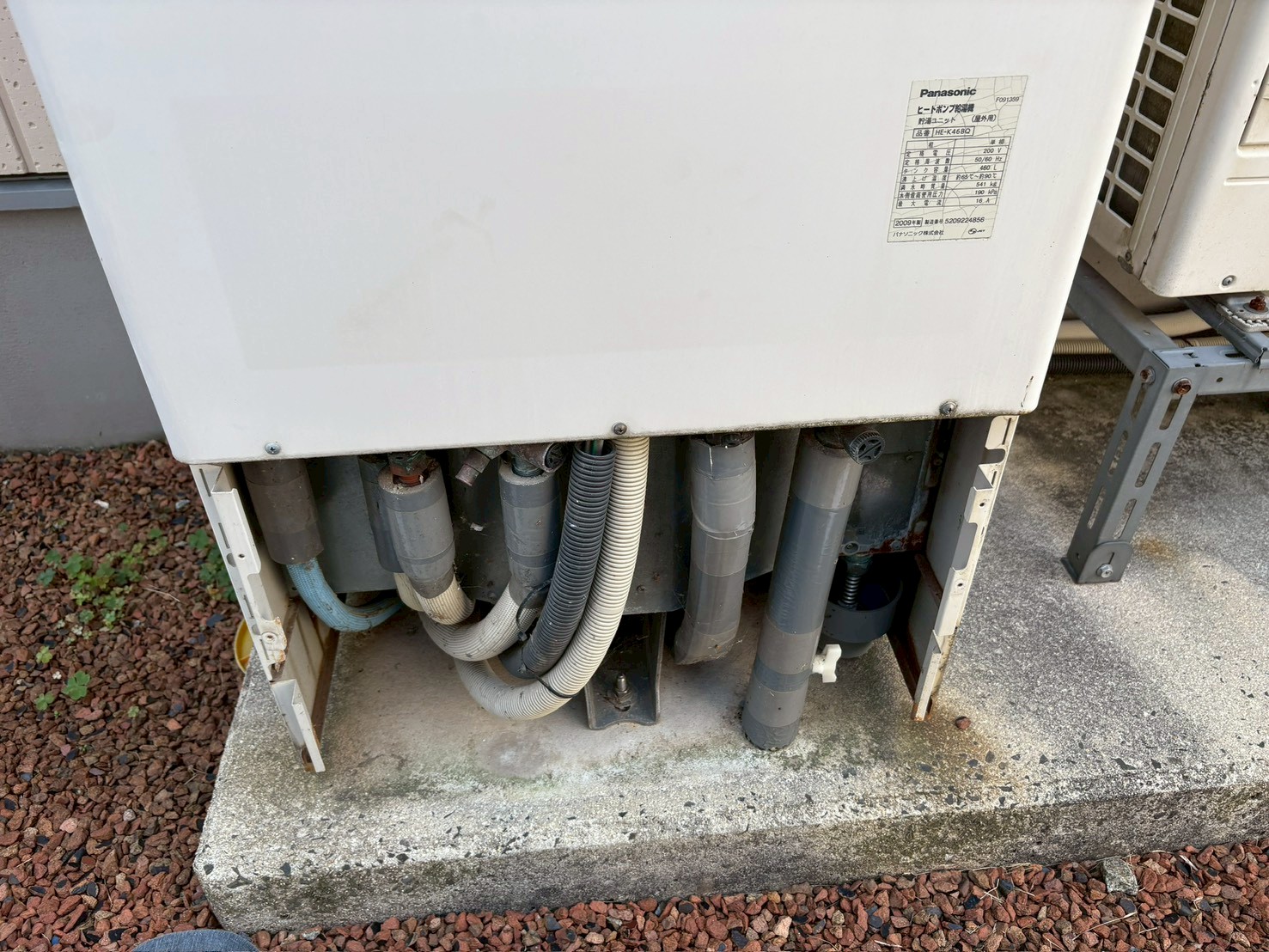 三重県松阪市で、戸建て住宅にてエコキュート設置工事を行いました。既存の電気温水器からの交換に伴い、基礎工事・配管接続・電気配線工事まで一括対応。ヒートポンプユニットと貯湯タンクを安全基準に基づき適切に設置し、耐震対策もしっかりと施工しています。