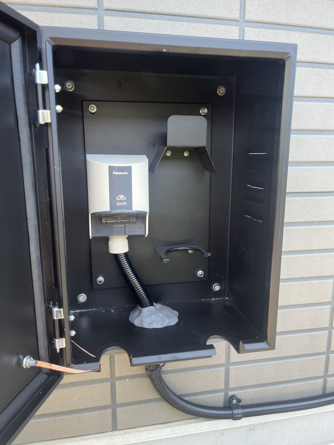 屋外設置のため、防水・防塵対策をしっかり行い、将来のEV買い替えにも対応できる仕様となっています。