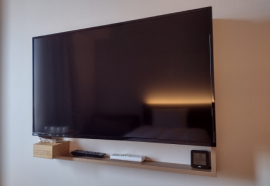 設置場所はリビングルームで、バルコニー側の壁に穴がある既存配管を利用できる環境でした。
