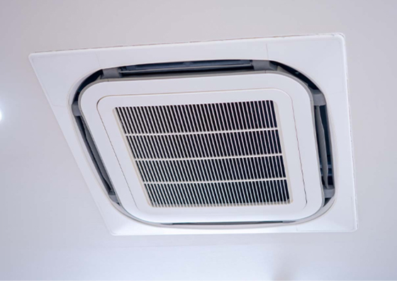 天井埋込み形の業務用エアコンは、室内機が天井に埋め込まれることでスペースの節約ができ、美観性が高いという特徴があります。また、空気の循環が良く、静音性が高いため、快適な環境を保てます。一方で、高い設置技術が必要であり、施工に専門知識が必要です。業者によっては対応できないものもありますが松阪電気工事店では対応が可能となっております!